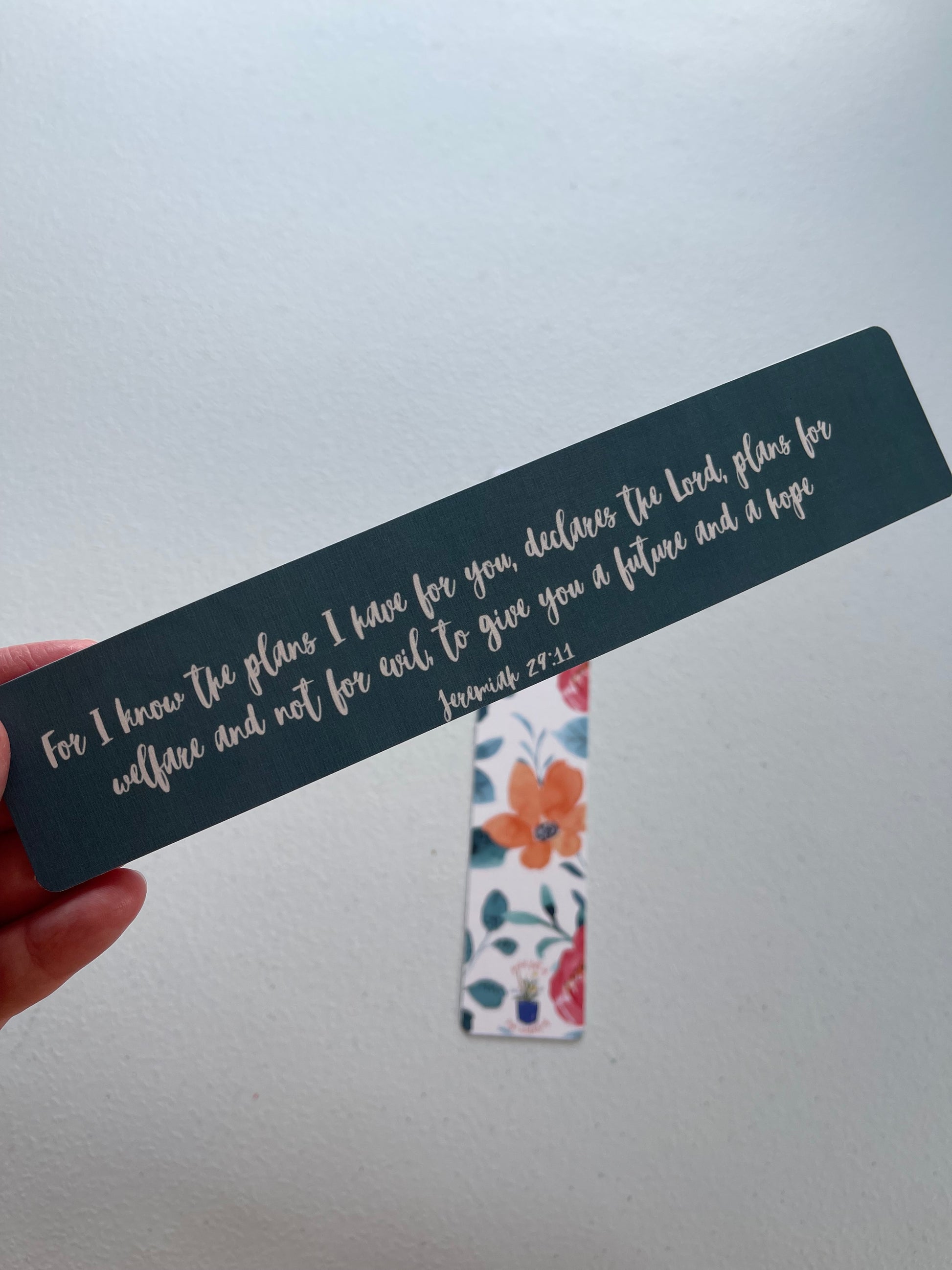 Front of Bookmark - “For I know the plans I have for you, declares the Lord, plans for welfare and not for evil, to give you a future and a hope Jeremiah 29:11”