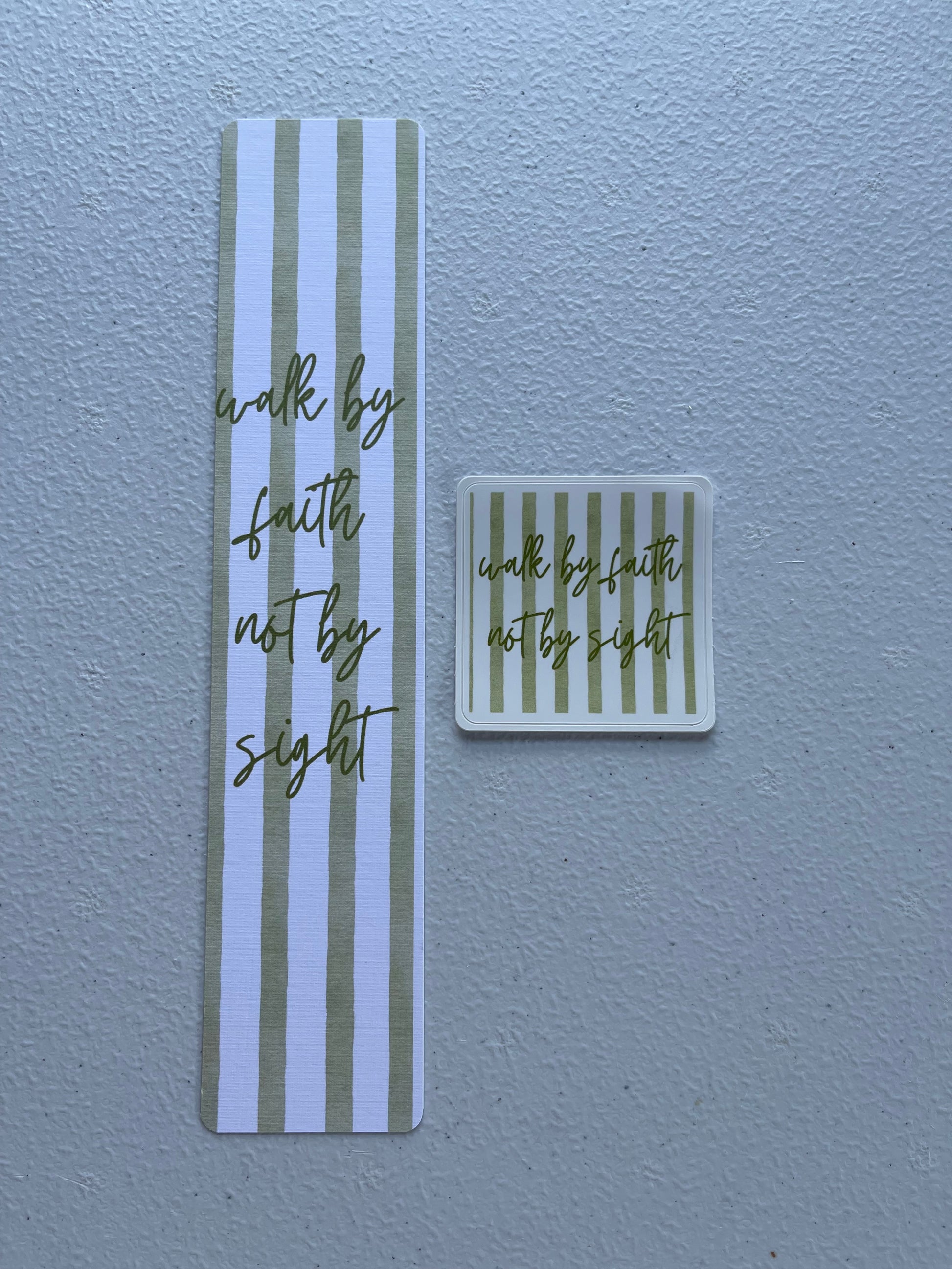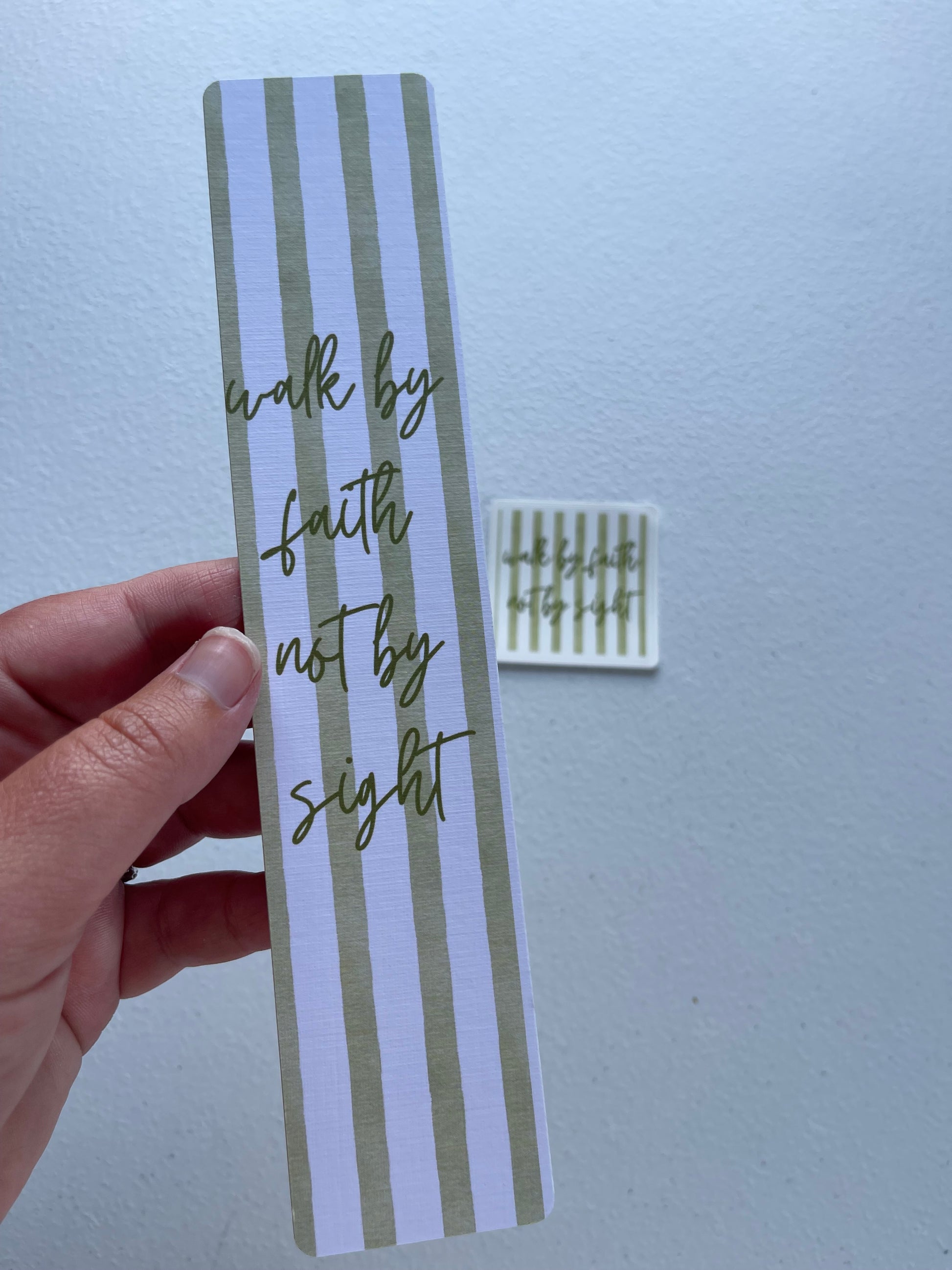 Walk by Faith not by sight bookmark is professionally printed on 16 count linen paper