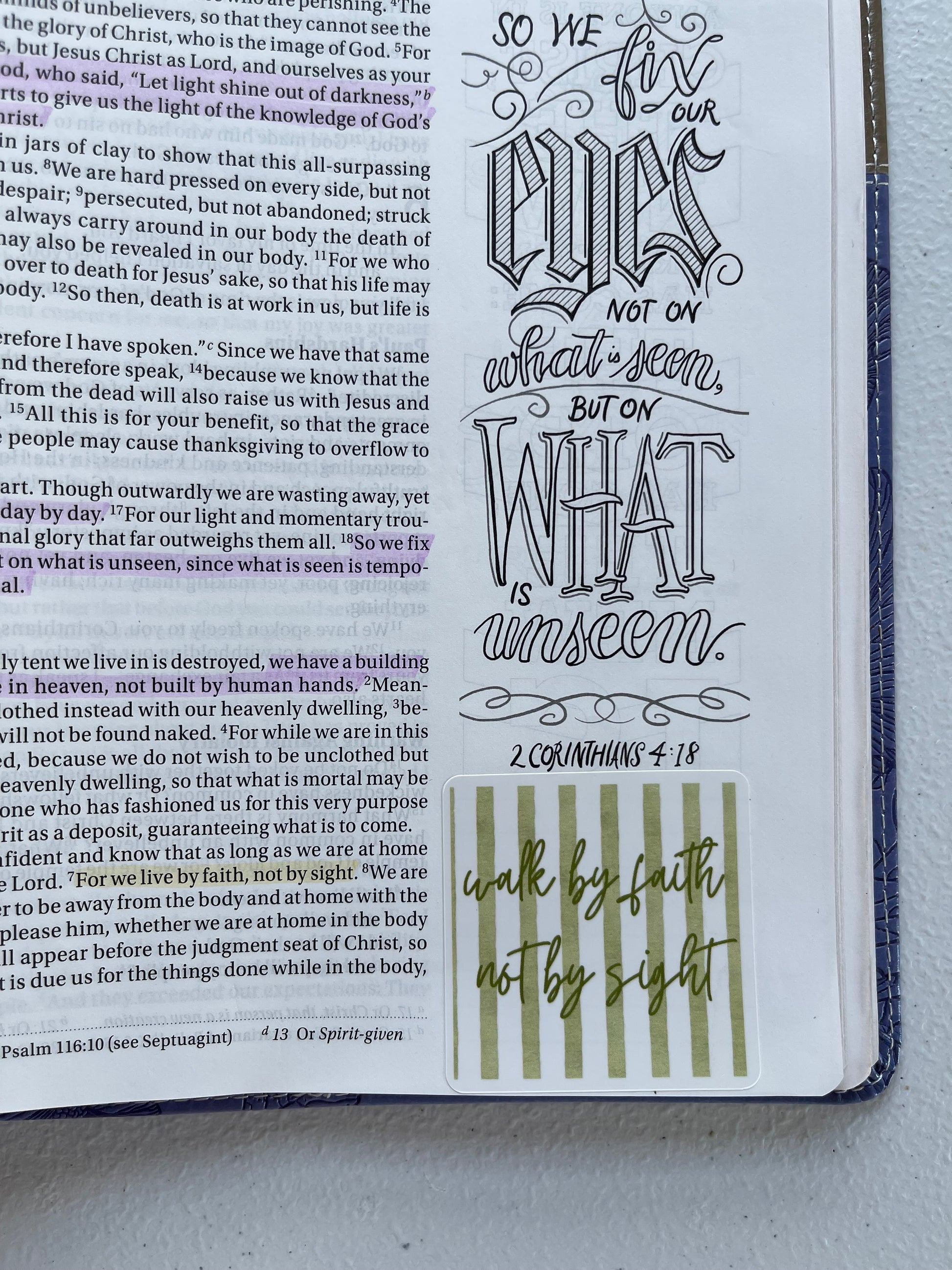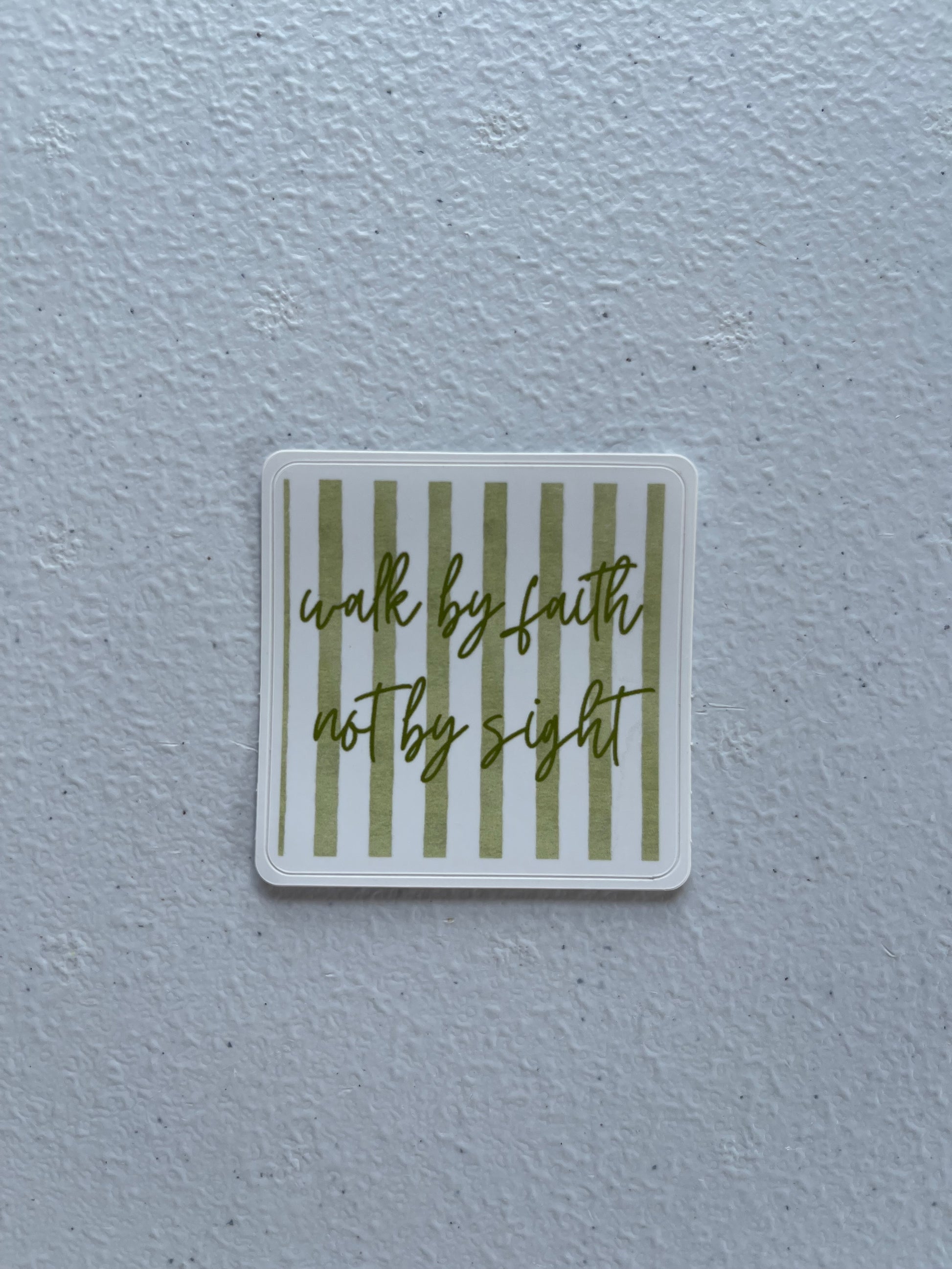 2 x 2 inches glossy sticker with “walk by faith not by sight”